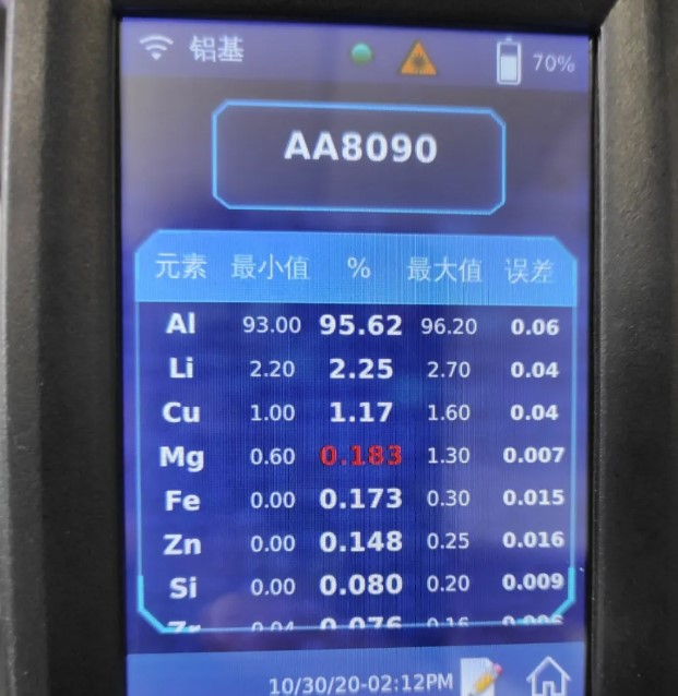 光譜儀,可以對鋁合金中的鋰(Li)元素進行精準的定量分析。